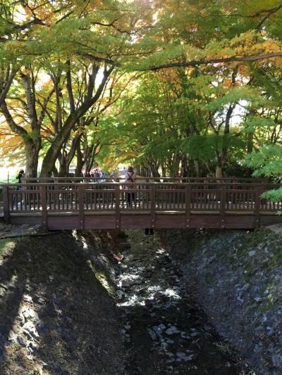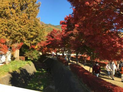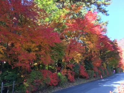河口湖に近い入口付近はまさに見頃の色付き具合。