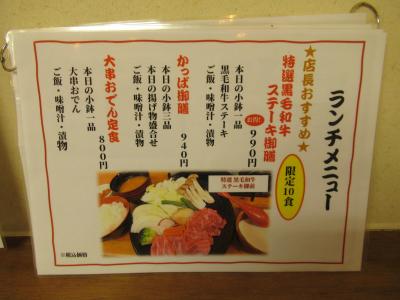 おでん単品が590円ですが、「大串おでん定食」で800円です。