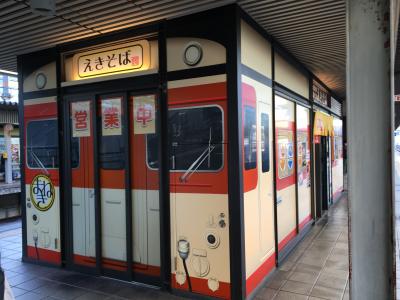 市内には椅子に座って食べられる多くの「えきそば」のお店があります。