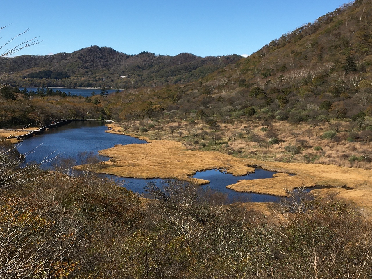 赤城神社の啄木鳥橋も老朽化で渡ることも出来ず、覚満淵の草紅葉も唯の枯野です。