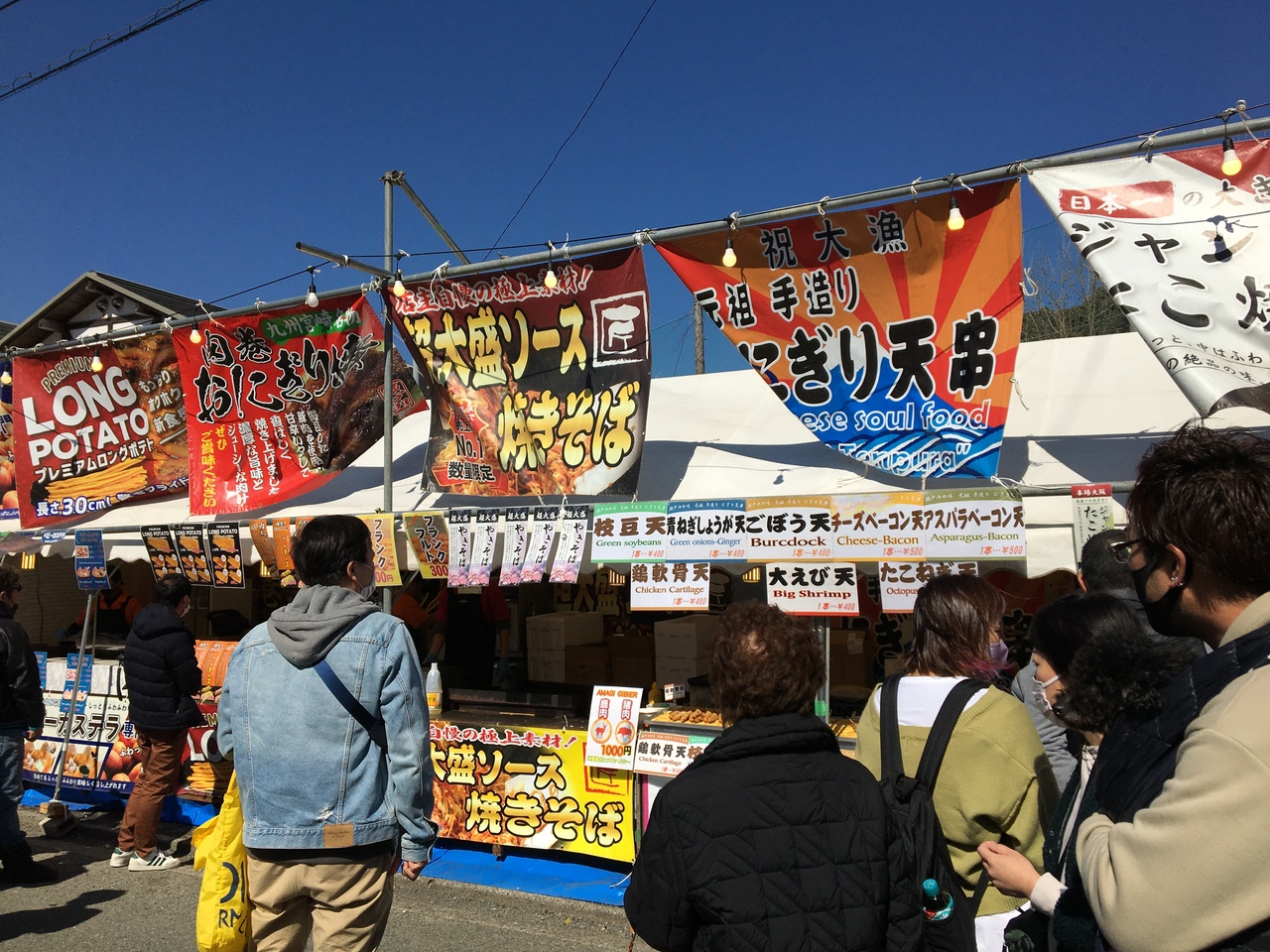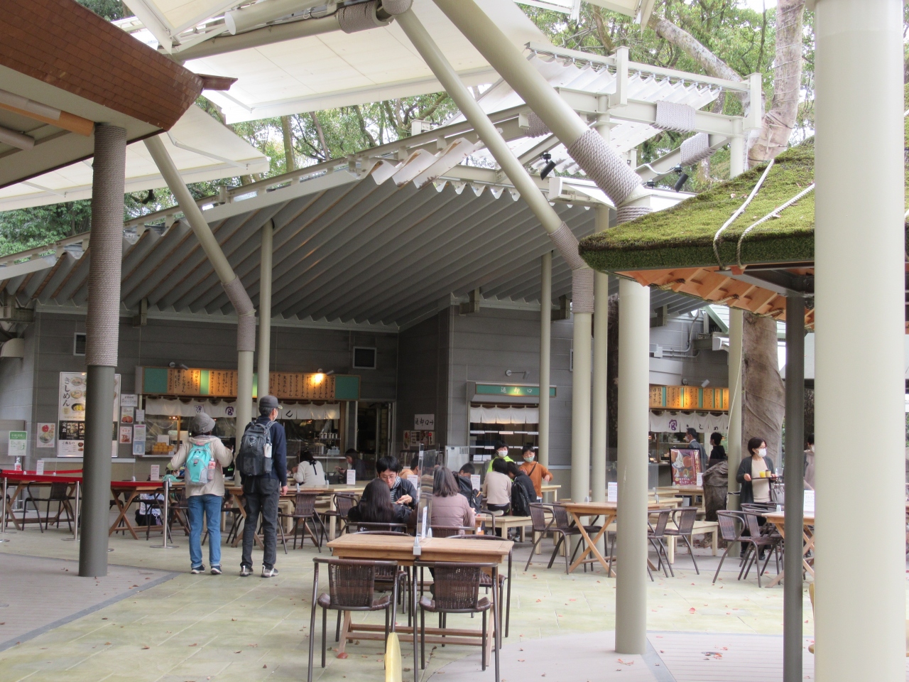- 屋外フードコートみたいな感じ。暑い・寒い・雨の日はチトしんどいかも。揚げ物狙いのカラスに要注意。