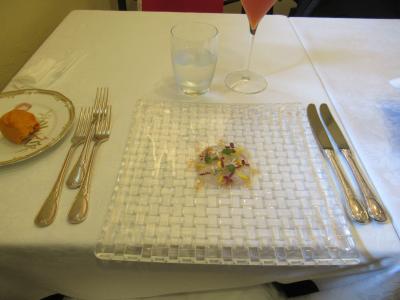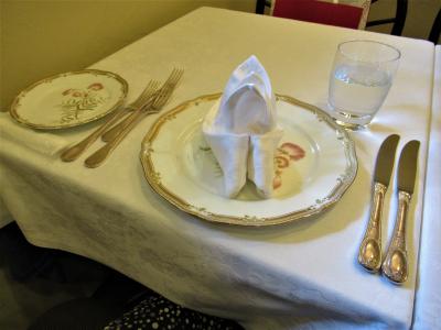 予約席には木綿の真っ白いクロスの上に並んだカトラリー。