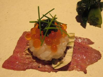 黒毛和牛雌牛のステーキやスペシャリテの「すき焼きしゃぶ 卵のエスプーマ」など、普段あまりお目にかかれない部位のお肉を使った手の込んだ牛肉料理を少しずつ頂けました。