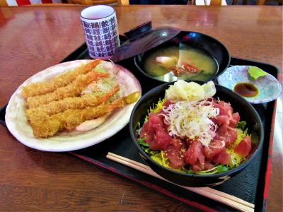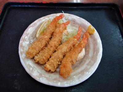 とんかつと大海老カツ各1枚のセットは見た目にもインパクトありますが、丁度いいボリューム。