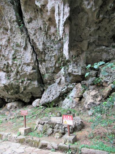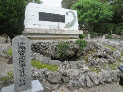 塔の前の洞窟が「沖縄陸軍病院第三外科壕跡」。