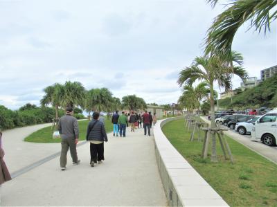 バスは知念体育館の脇に停め、先ずは知念岬公園展望所まで行きます。