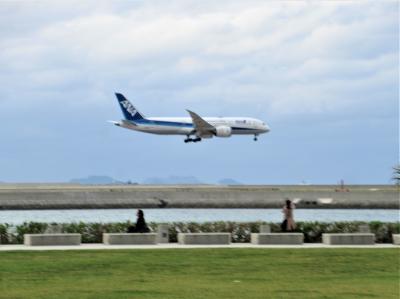 那覇空港に離着陸する飛行機を低空で見ることができます。