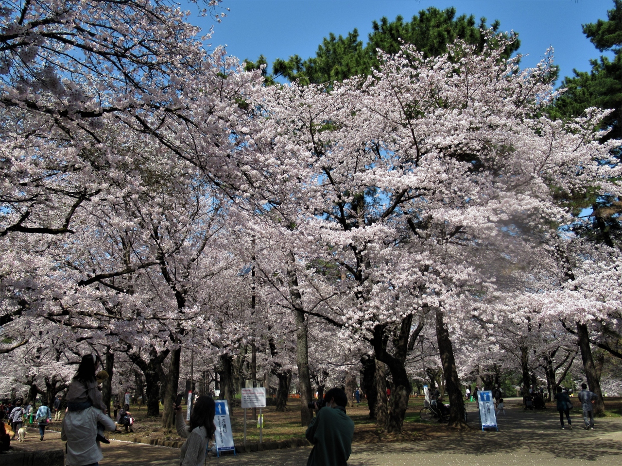 大々的な宴会のブルーシートは流石にありませんでしたが、土曜日ということも重なって、コロナの外出自粛なんて全く何処吹く風っていう感じで人が溢れていました。