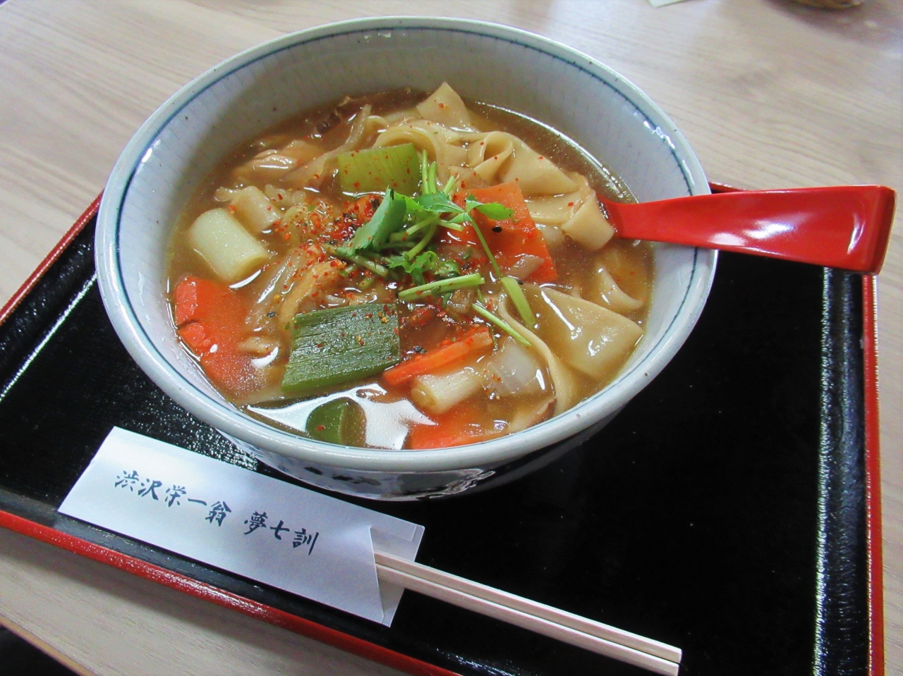たっぷりの具材は地元名産:深谷ネギをはじめ、鶏肉・人参・牛蒡・白菜・油揚げ・大根・しいたけ・三つ葉など。