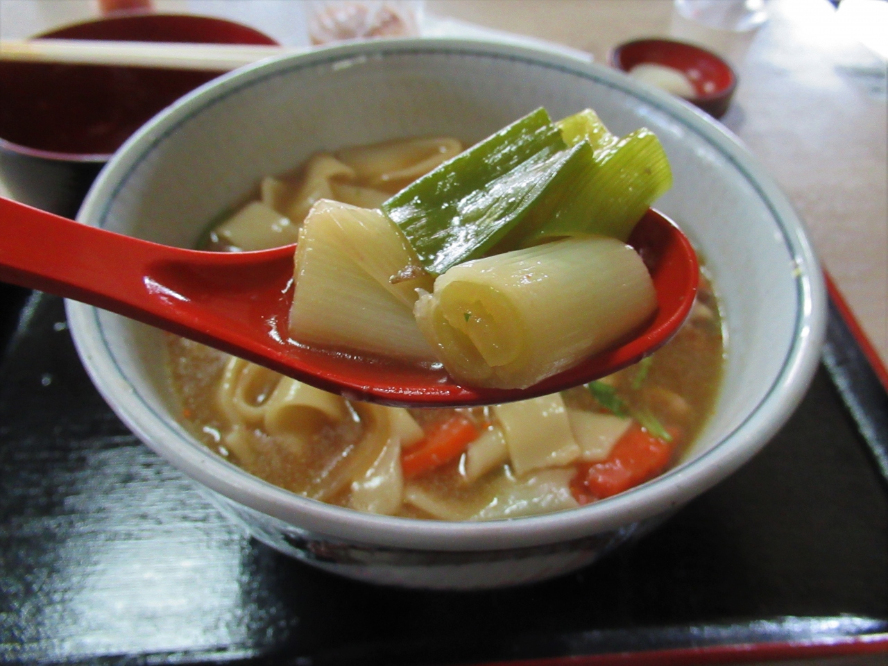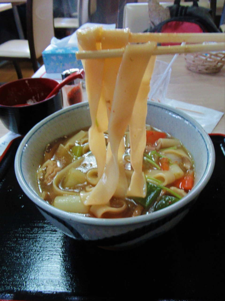 幅広でモッチリつるつるした麺は、山梨のほうとうや、群馬のおっきりこみとも似ている感じ。