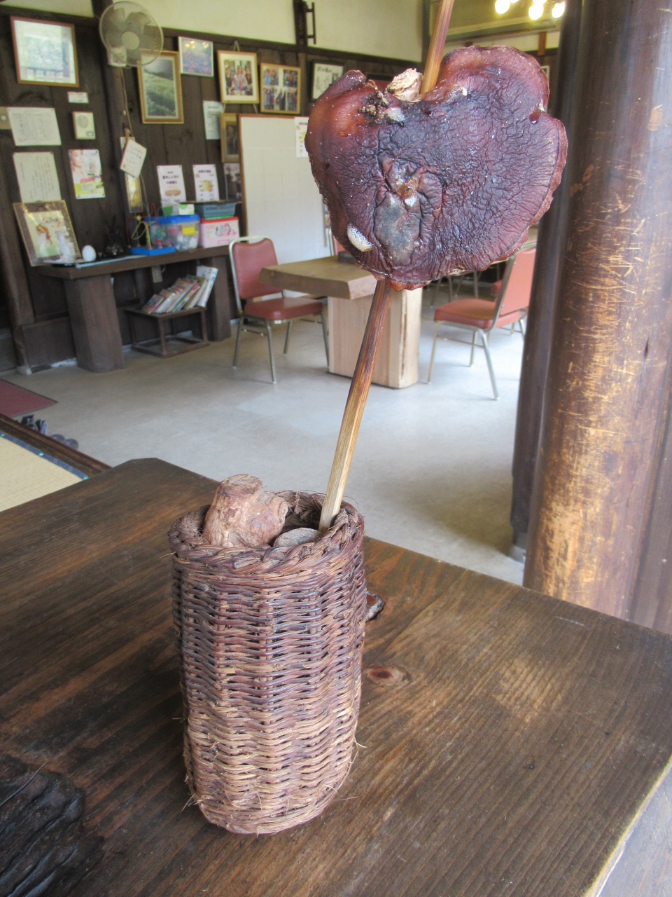 しいたけの串焼きはもちろん自家栽培のを囲炉裏で炭火焼きです。