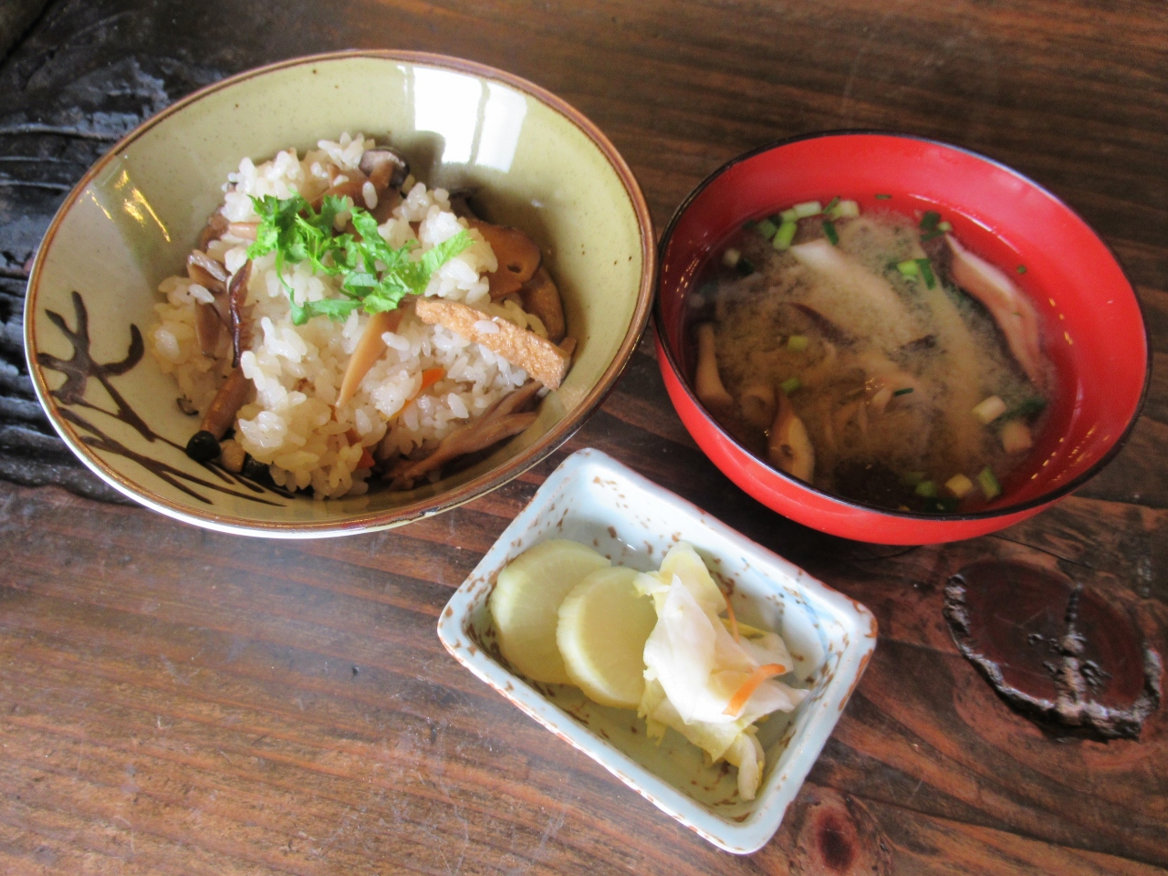 ・名物きのこめし・きのこ汁・お新香