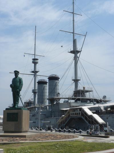 三笠公園にある「戦艦三笠」は明治35年に英国で造られ、日露戦争で活躍し、