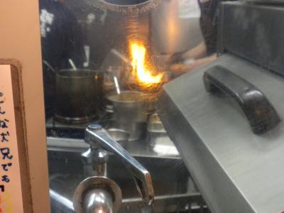 厨房でガスバーナーを2本使って炙るのがウリです。
