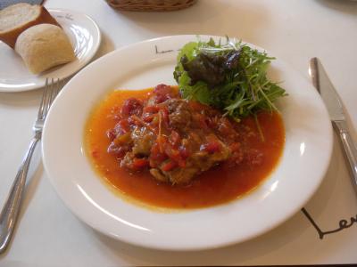 当日はメインに鶏もも肉のトマトソース煮込みを選びました。