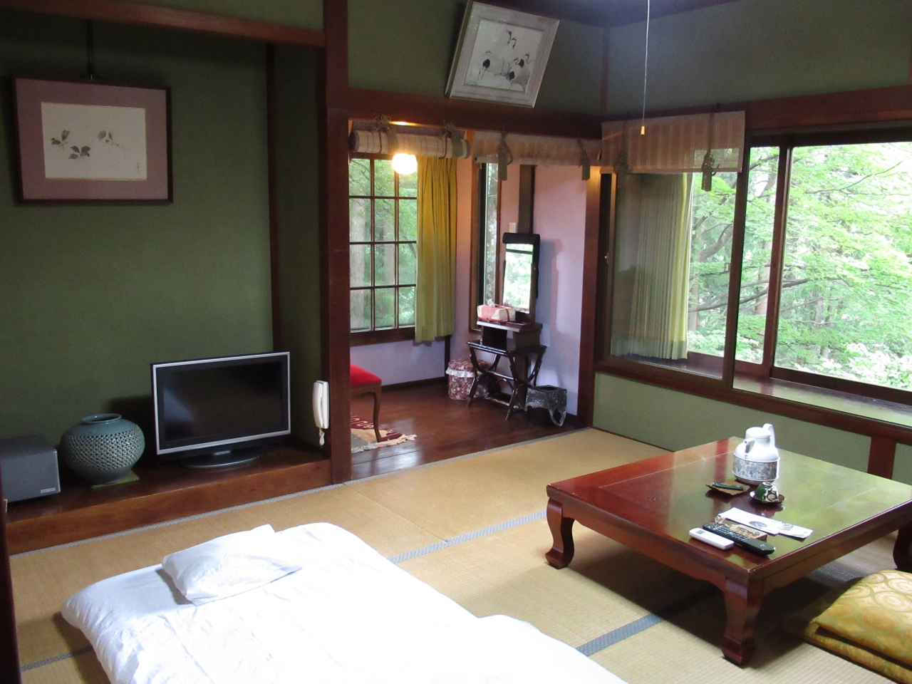 部屋は一番古い第一別館一階でトイレも洗面所も無い6畳間でしたが、露天風呂まで近くて眺めも良くて良かったかも知れません。