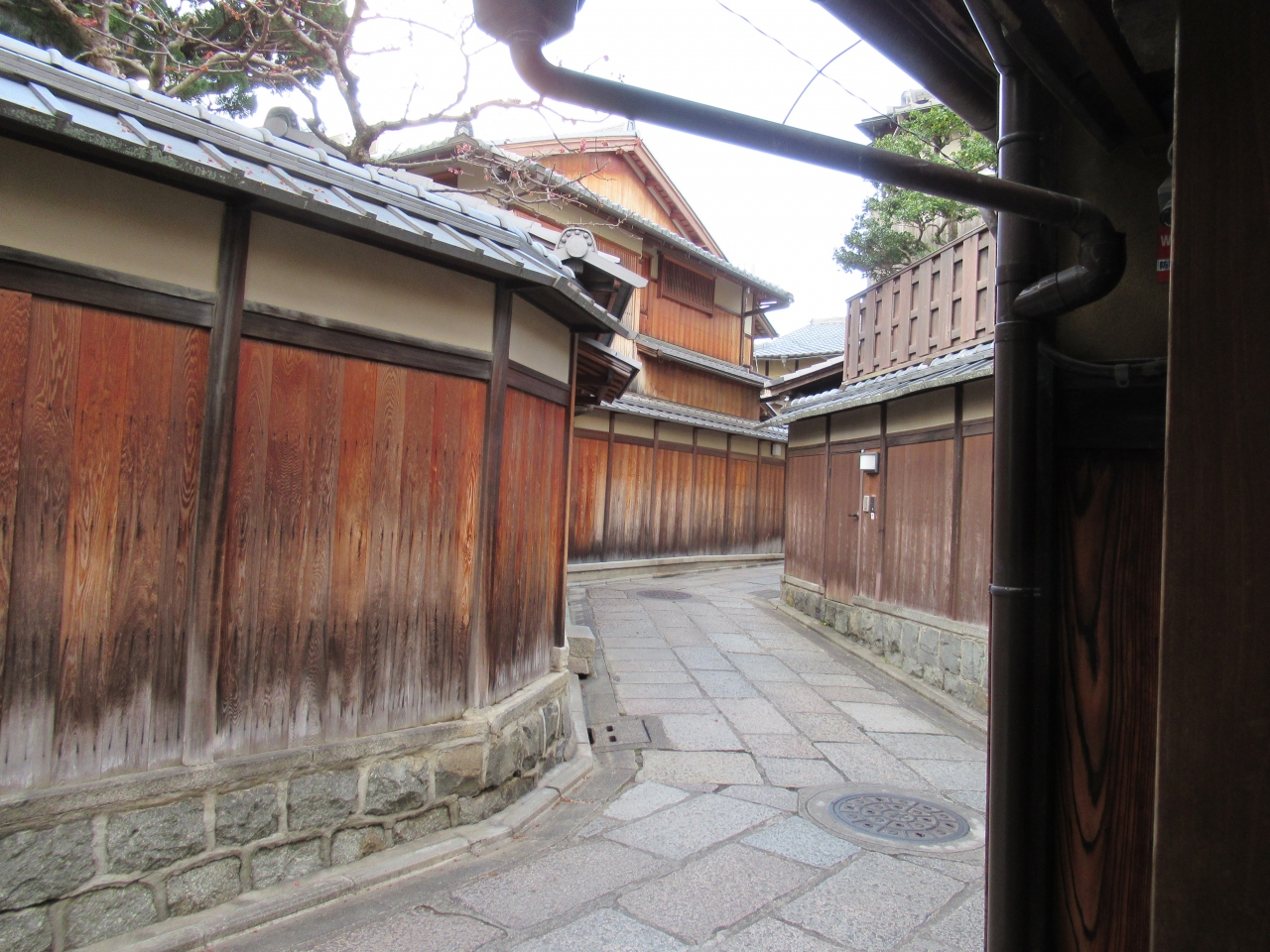 花見小路の二筋東、祇園甲部歌舞練場の北側にある「旅館 紫」。