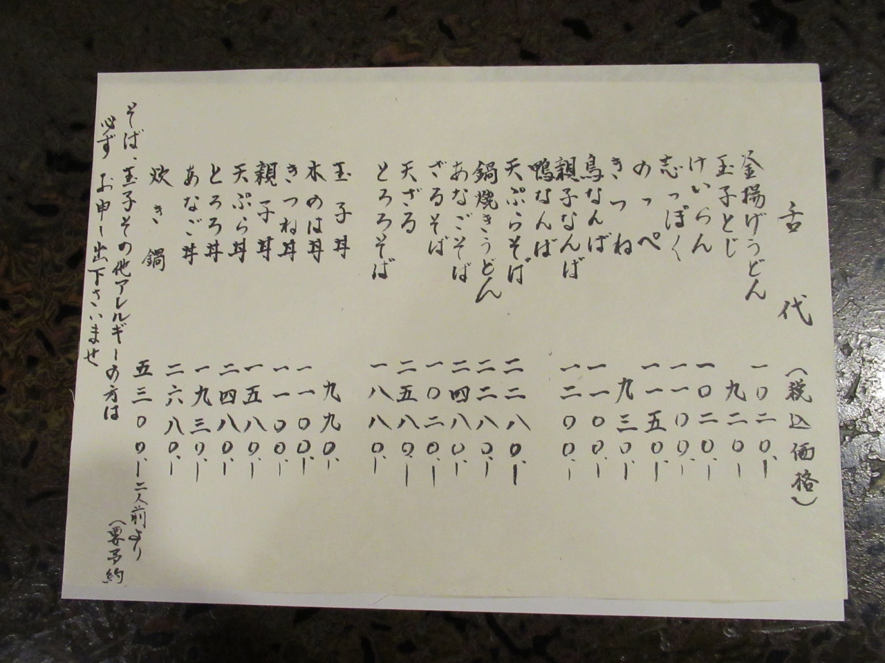 昼夜値段の違わないお店は夜に行くのに好都合かも。