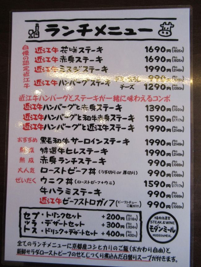 認定「近江牛」指定店だそうですが、私が食べたローストビーフ丼に使われているのは近江牛ではないとのことでした- 旅行時期
