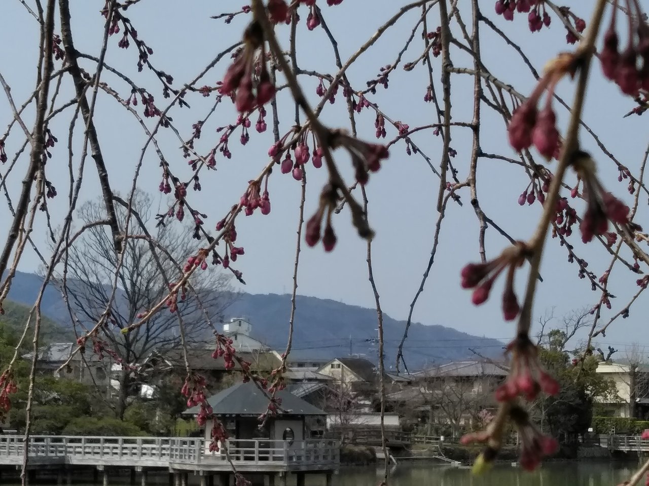 原谷苑の桜は未だなのは予想がつきましたが、案の定、わら天神前から出ている無料シャトルバスの係員の方の話では三分咲きだとか。