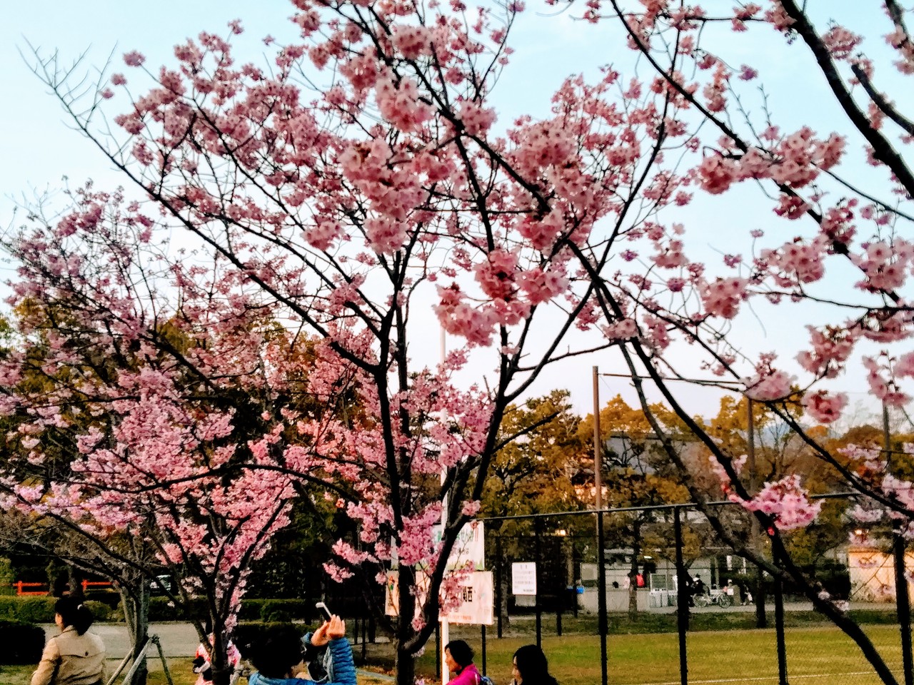 今日もお天気が良く、8分咲き程度でしたが近所の人たちがブルーシートを拡げていました。
