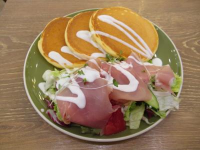 甘いパンケーキも少し分けて貰いましたが私は一口で十分ですね。