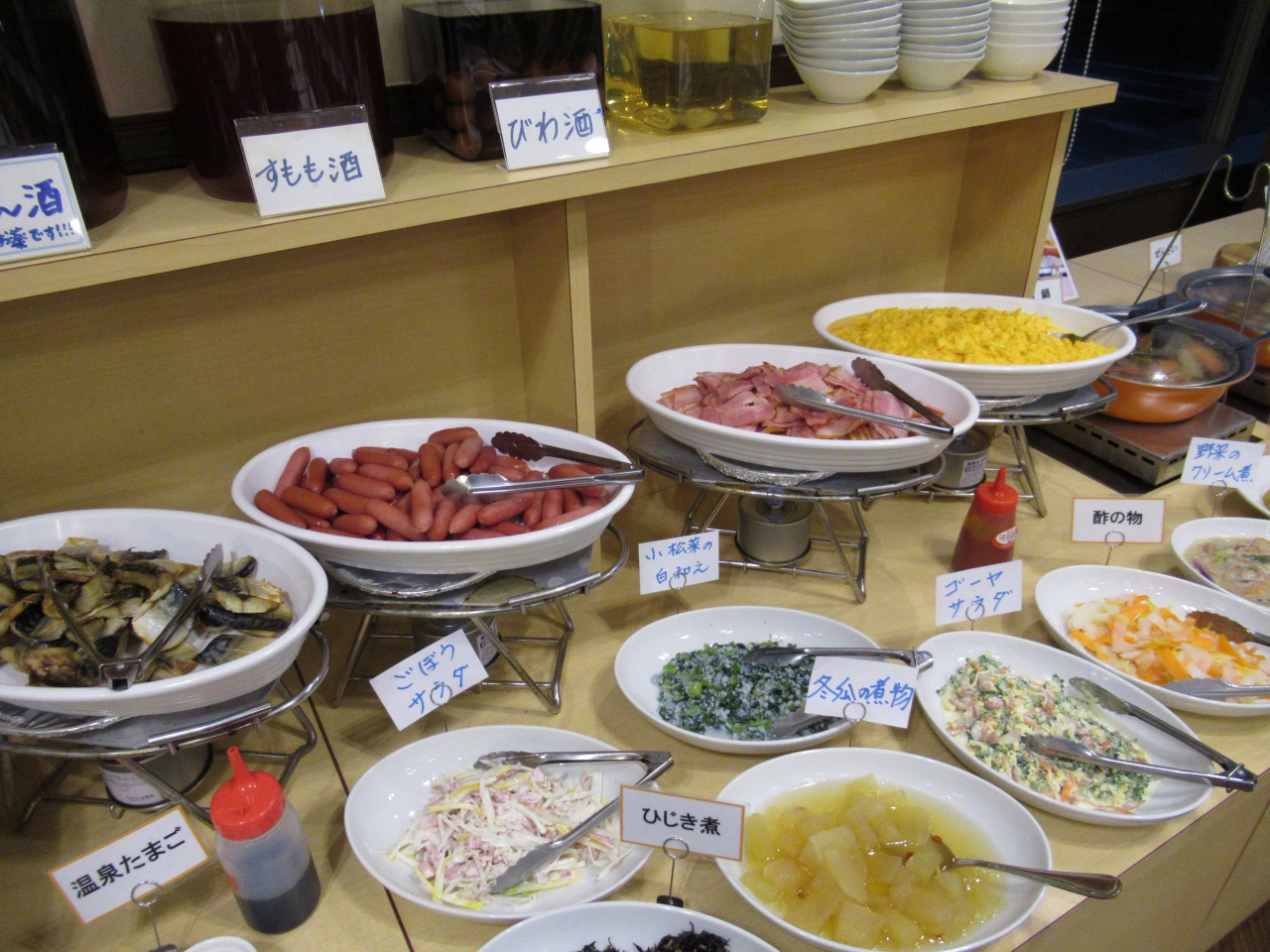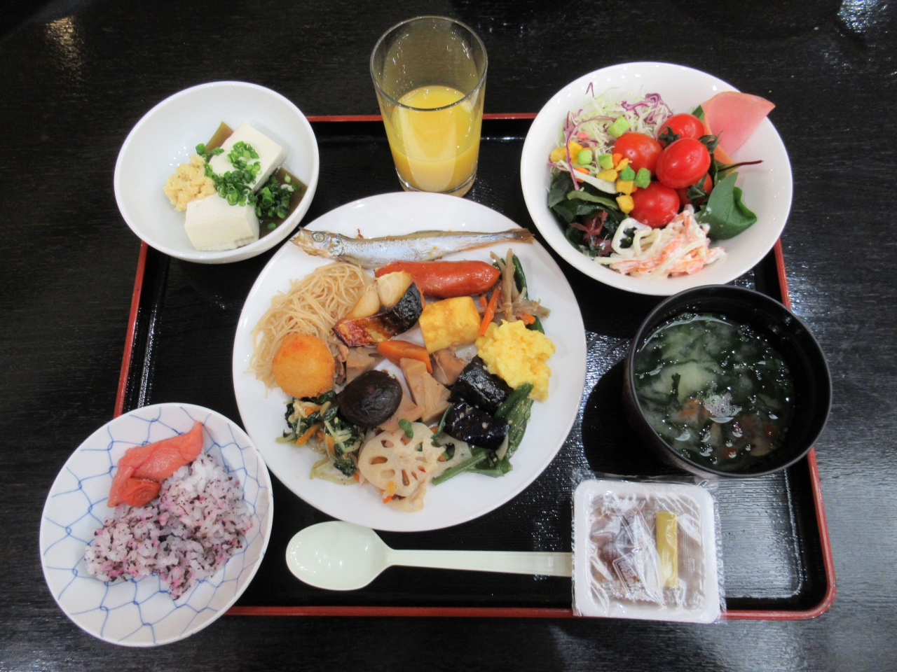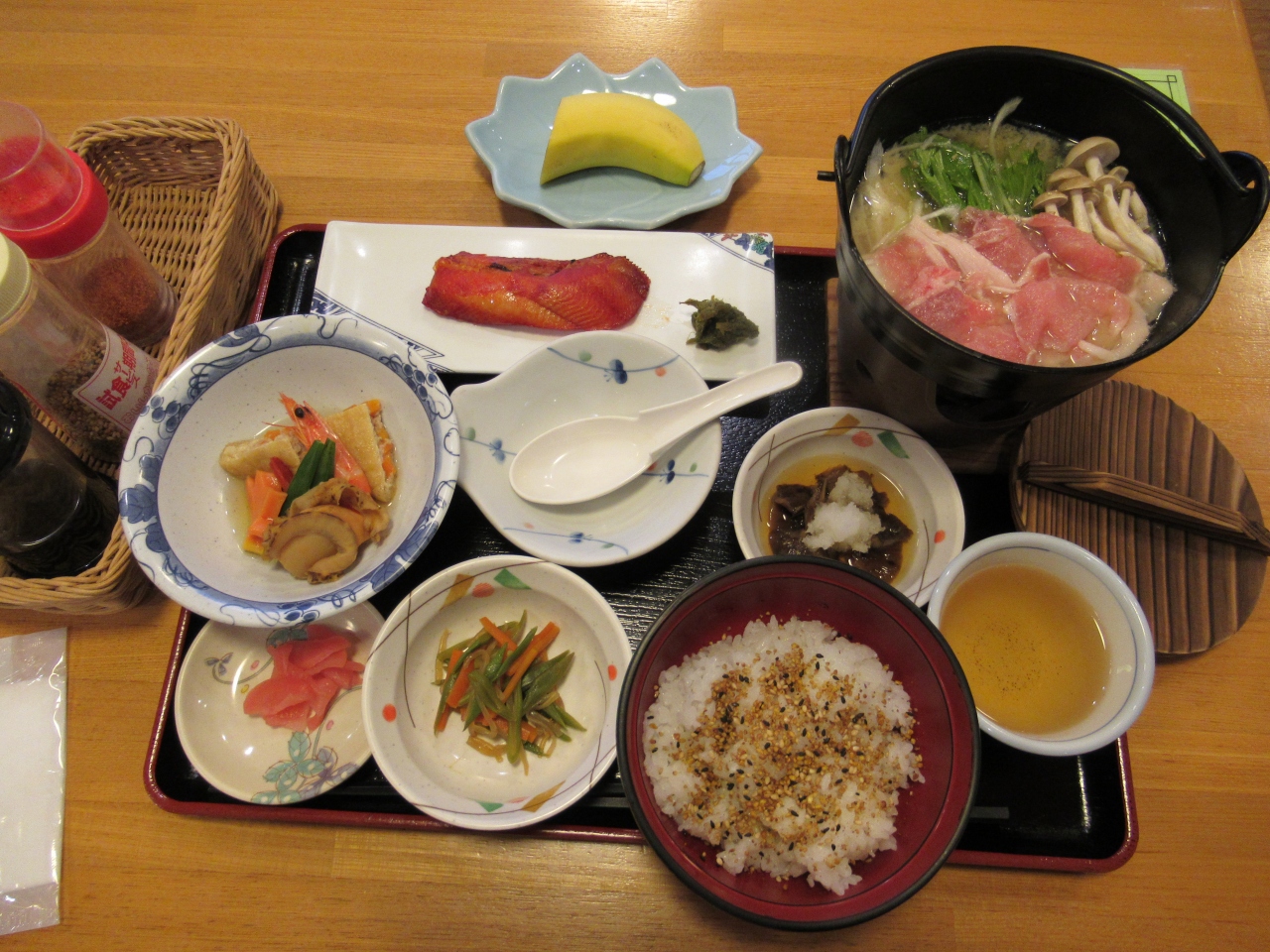 - 夜はお決まりの和食膳。朝食はラウンジでバイキングです。