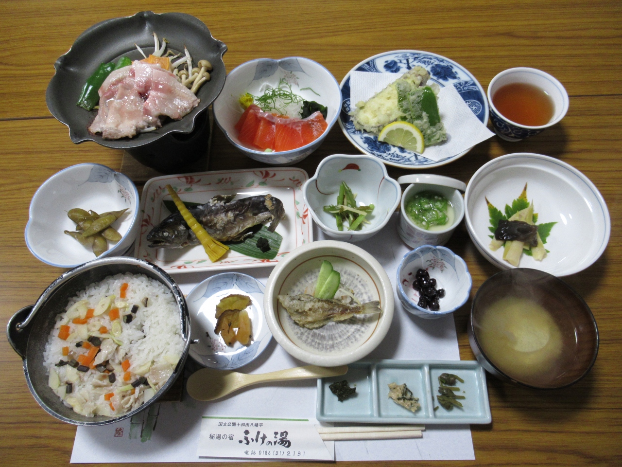 食事は食事処で地元食材も使った女将手作りの薬膳料理。
