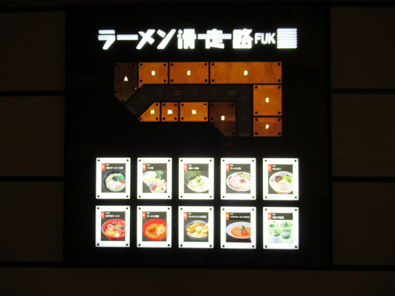 ラーメン滑走路には10軒ほどの専門店が連なっている中で、行列の出来ている店、全く客が入っていない店など様々。
