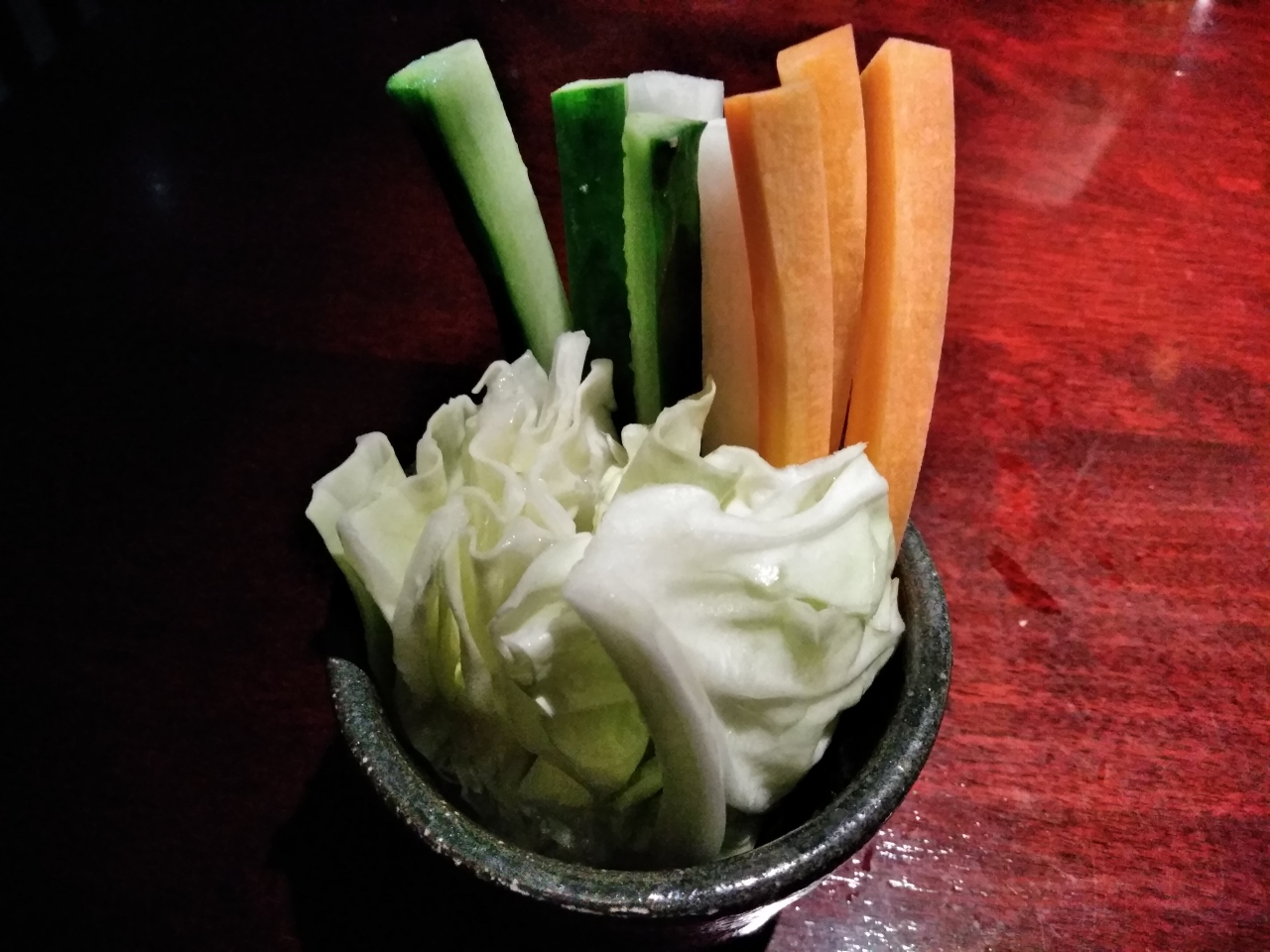 きゅうり・大根・人参のスティックと大切りキャベツも。