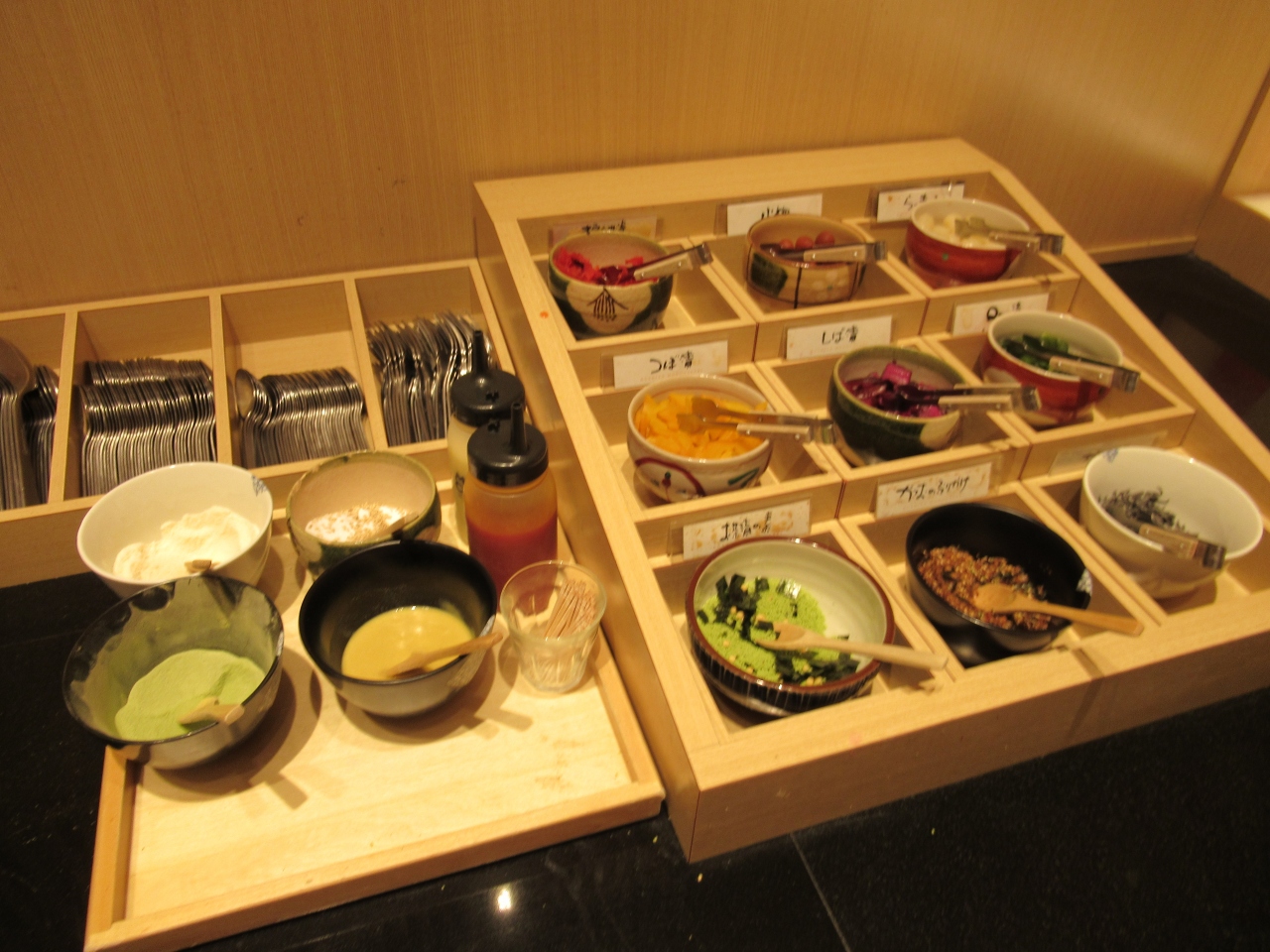 お出汁ときざみ葱、生姜のすりおろしとワサビは自由に取って来られるので、ひつまぶしのように3度の食べ方をすると美味しいとクチコミには書かれていましたが、やっぱりそれでは味が濃くなり過ぎて、私は普通に頂いた方がいいと思います。