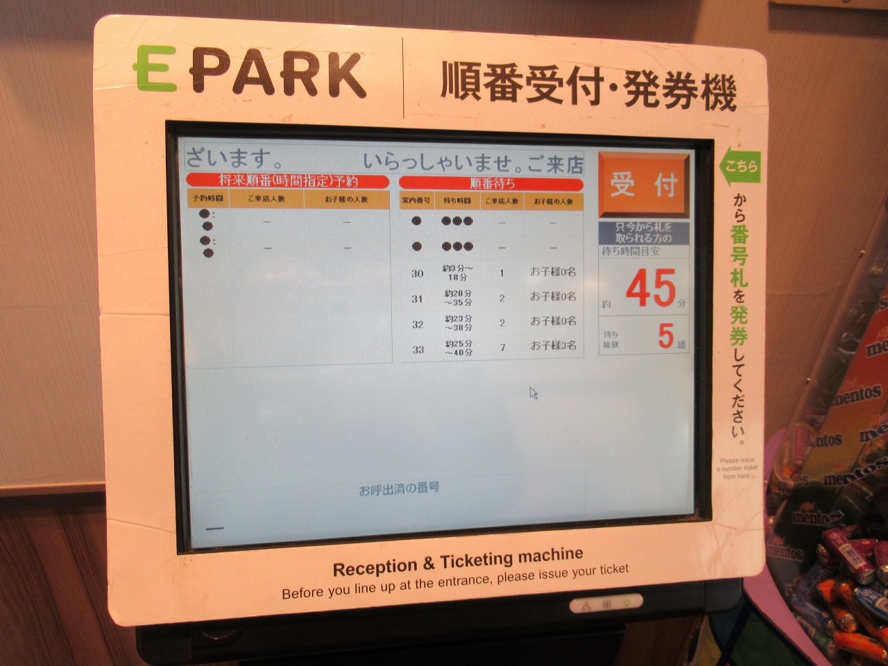 いつもなら平日のこの時間なら待ち時間は無いのですが、3/22は卒業式とかも重なったみたいで50分待ちだと表示されました。