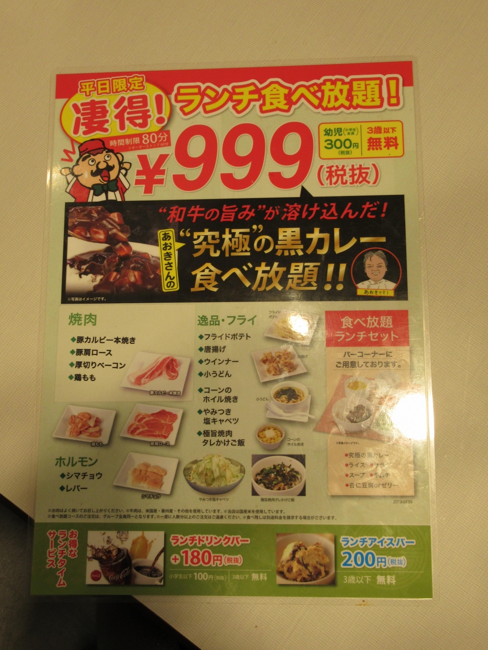 受付リミットの14:00ギリギリに入店し、税別999円の「食べホ」1時間でお腹を満たして夕飯は抜きの生活パターンが不可能になってしまっていました。
