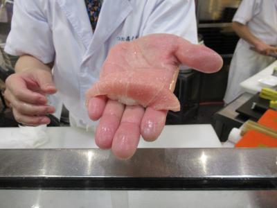 店内のカウンターに座って一番高い大トロ1貫税別398円を頂きました。