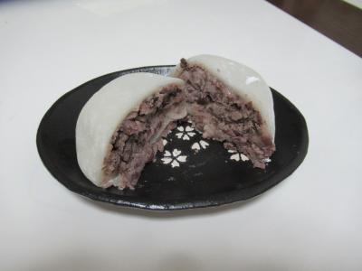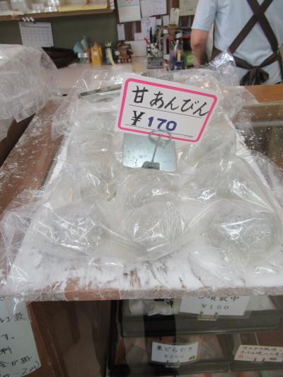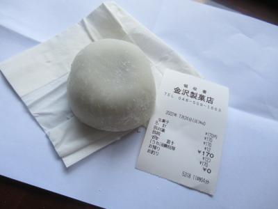 青島神社境内の茶房「檳榔樹(あじまさ)」で食べようと予定していた「甘乳蘇のソフトクリーム」が提供中止だったので、添乗員さんが言っていた青島名物「チーズまんじゅう」を参道の「お菓子処弥五郎」で頂きました。