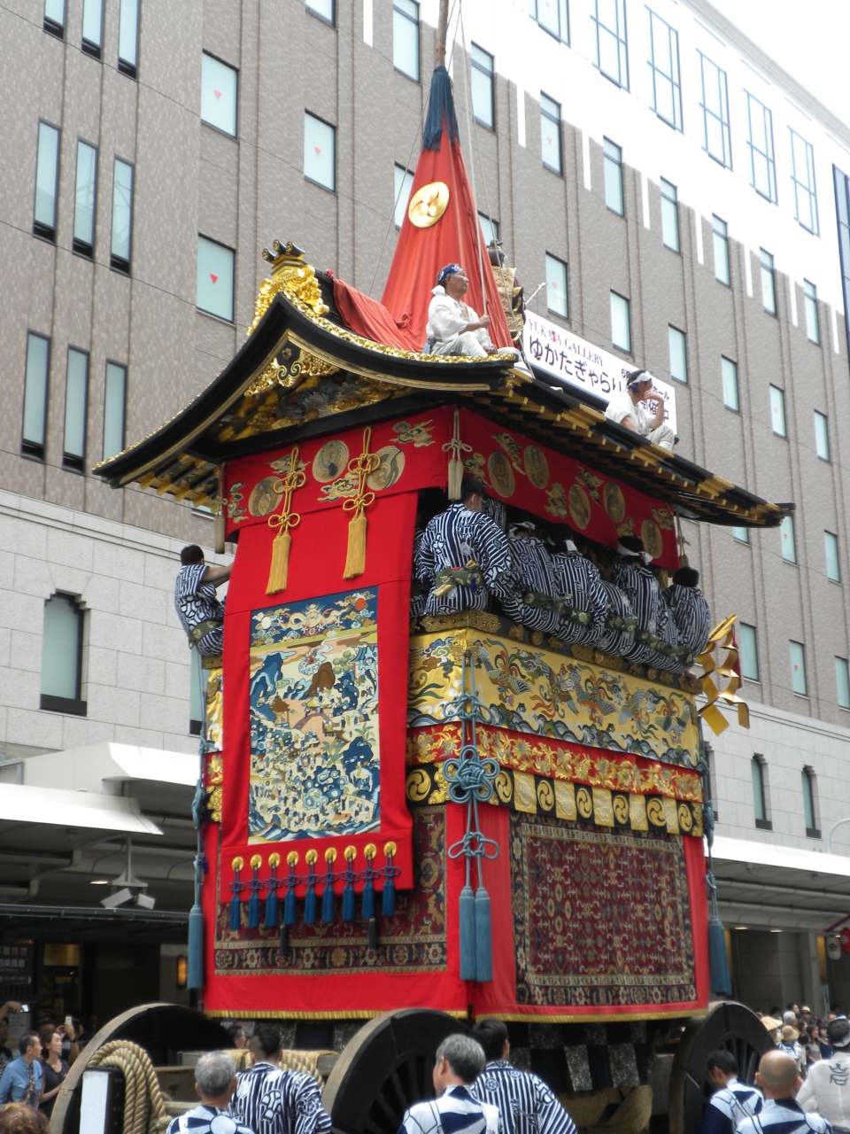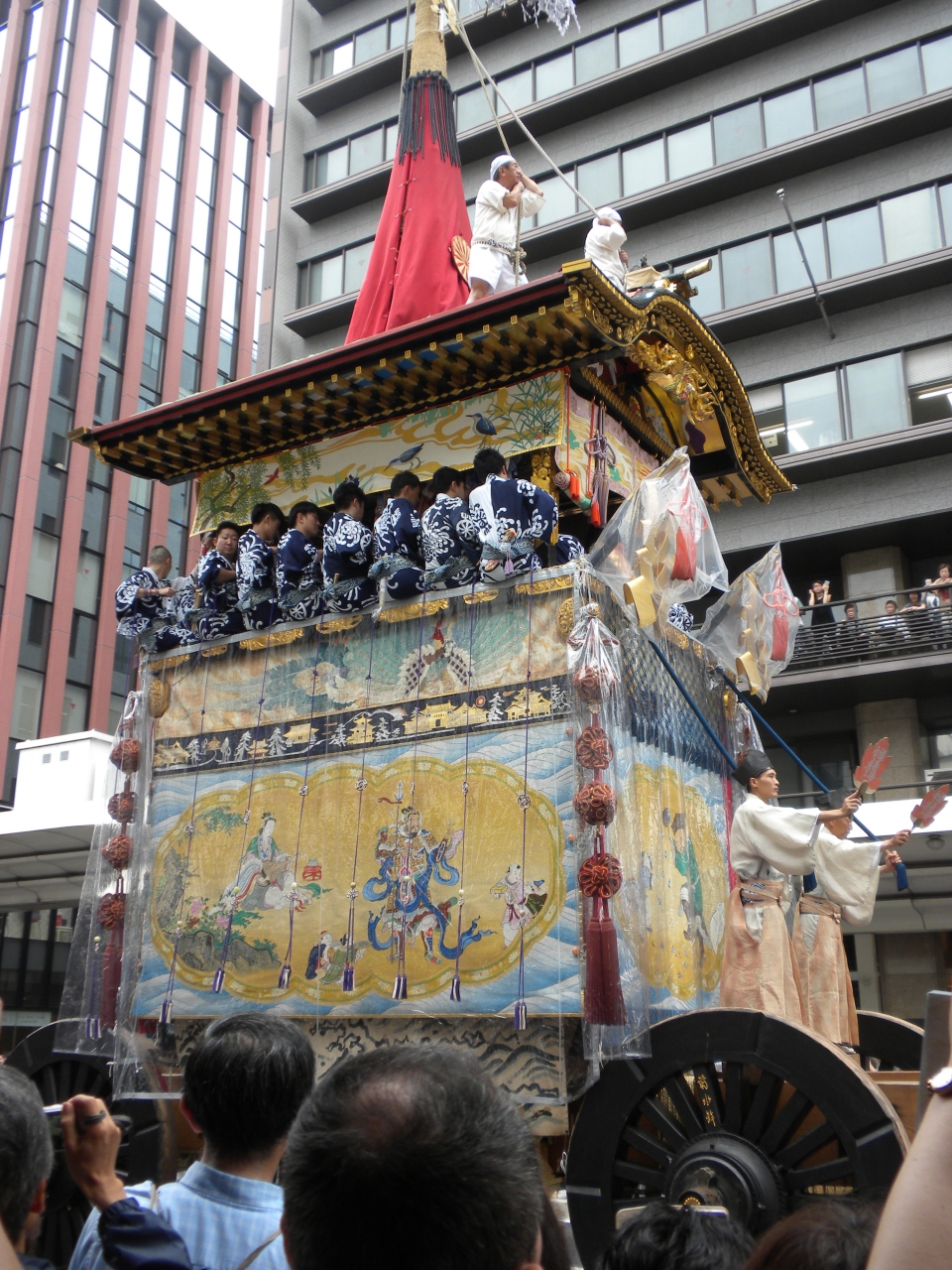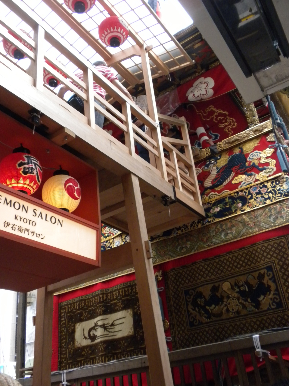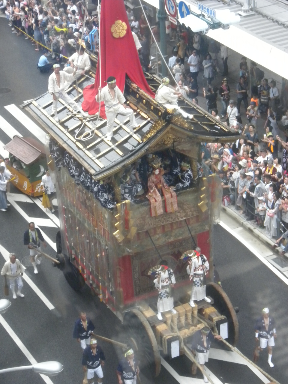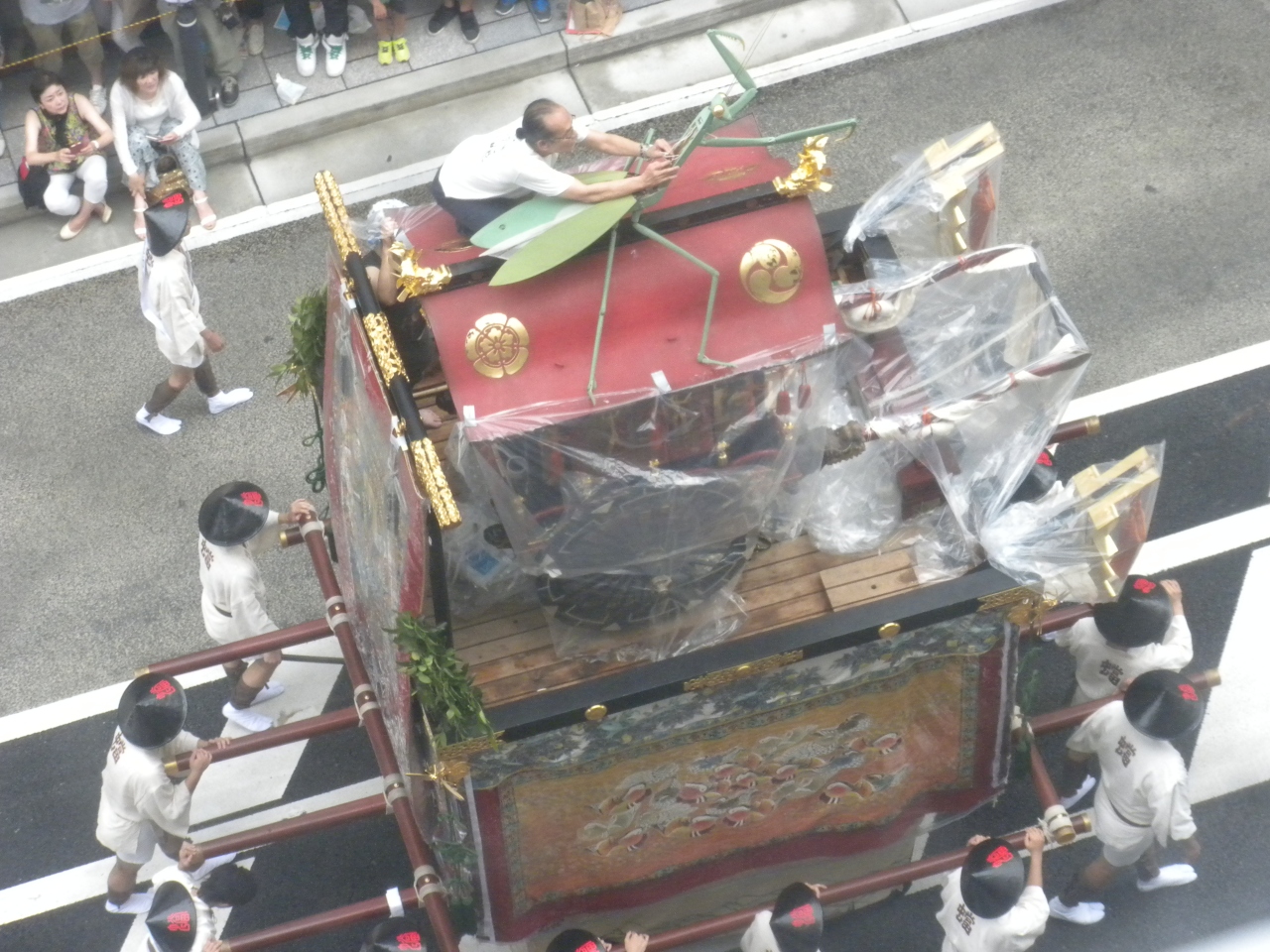 アーケードの下で朝早くから席取りはしたのですが、ホテルが四条通りに面していて、泊まった6Fの窓際から下を見下す事ができたので、暫くガラス越しに見学。