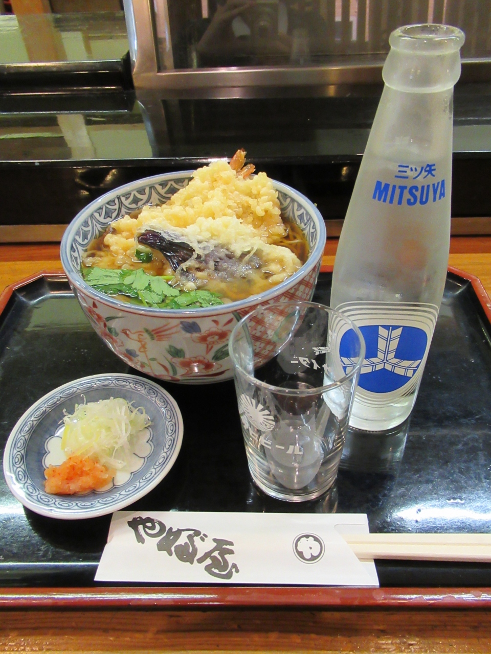 賢治が好んだという天麩羅そばと三ツ矢サイダーのセットです。