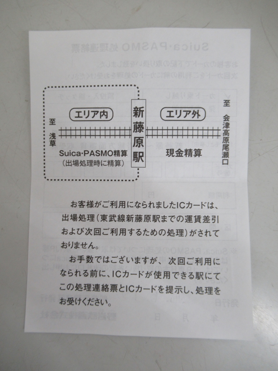 東武鉄道の乗車券分は次回ICカードの使える東武鉄道に乗車する際に精算するようにと証明書を渡されました。