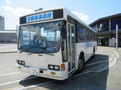 チェックアウトの朝に花巻南温泉郷のシャトルバスが山水閣のロビー前から出ます。