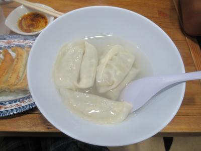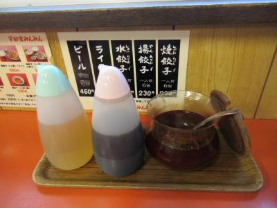 メニューにはライスもビールも無く、焼き餃子と水餃子のみ。