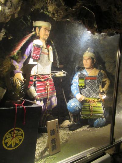 義経の家来であった源有綱は追手から逃れてここに身を隠していたのですが、米のとぎ水が白く流れ出して居場所を突き止められ、頼朝軍に依って無念の最期を遂げたとの言い伝えがある洞窟「源三窟」です。