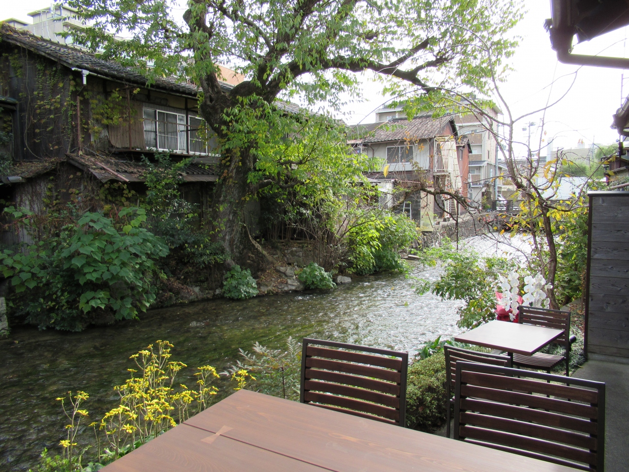 平安神宮の南側、祇園へ流れていく白川の清流沿いにお店はあります。