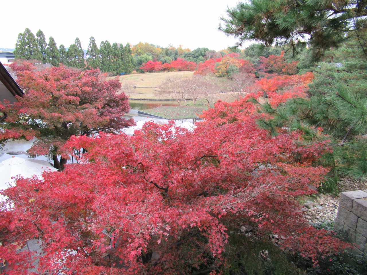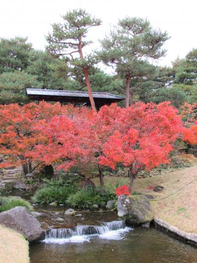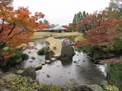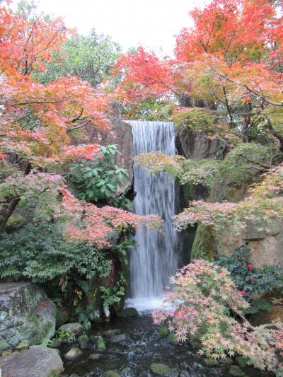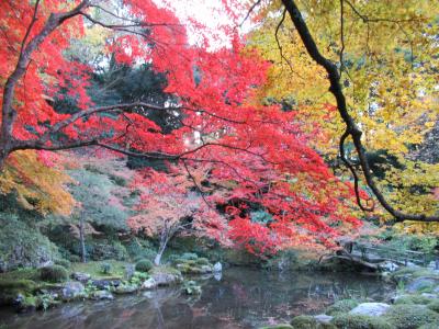 竜田から移植されたという楓が彩る池泉回遊式庭園の紅葉は正に見頃の美しさでした。