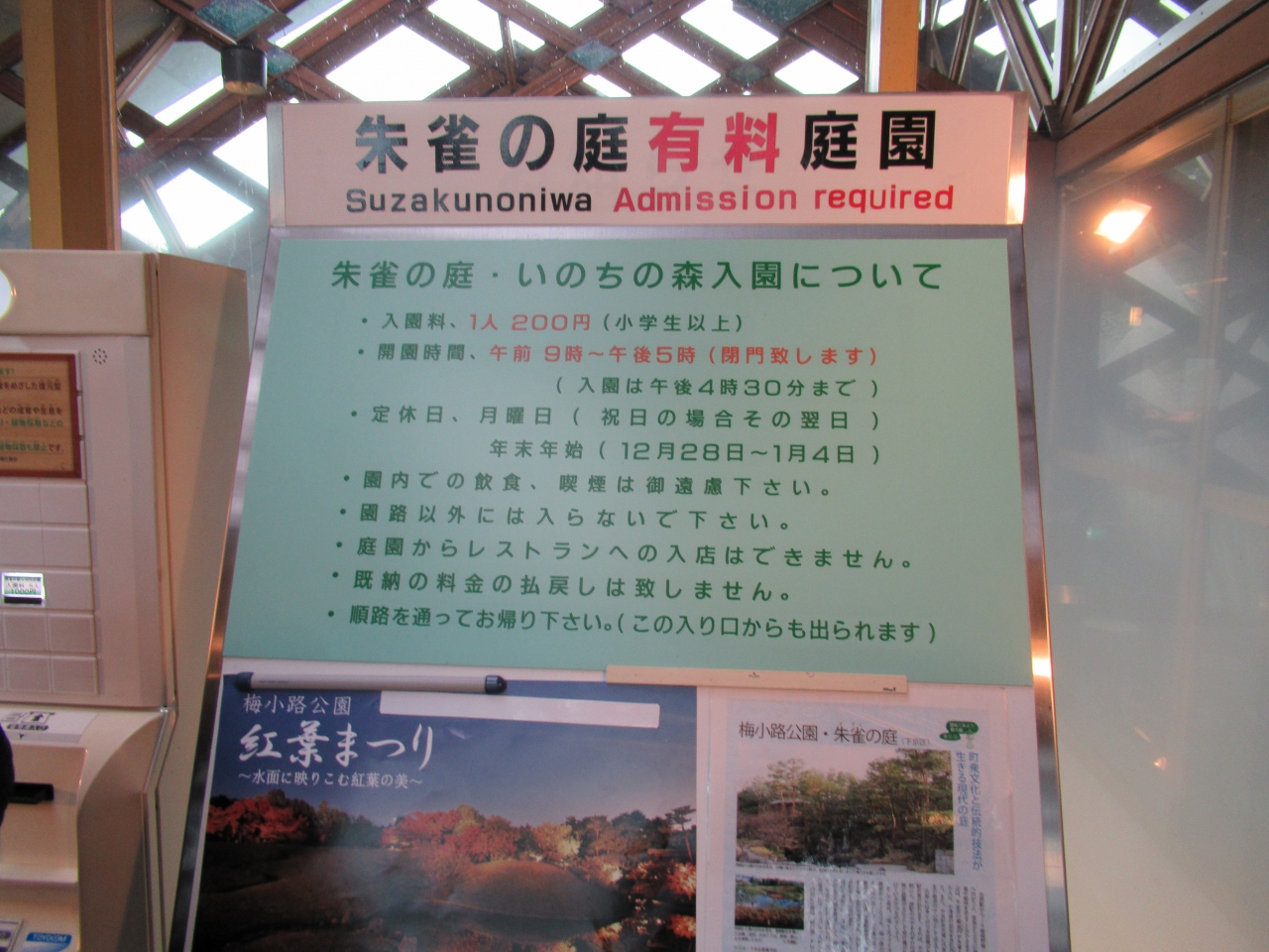 入口から紅葉の具合はどうかな?とチョッと覗いたら、そんなでもないみたいだったので入りませんでした。