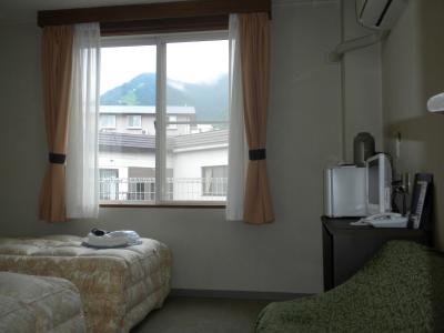 全室ベランダ付き。38㎡のツインのお部屋を一人使用で1泊2食付き入湯税込17,214円でした。