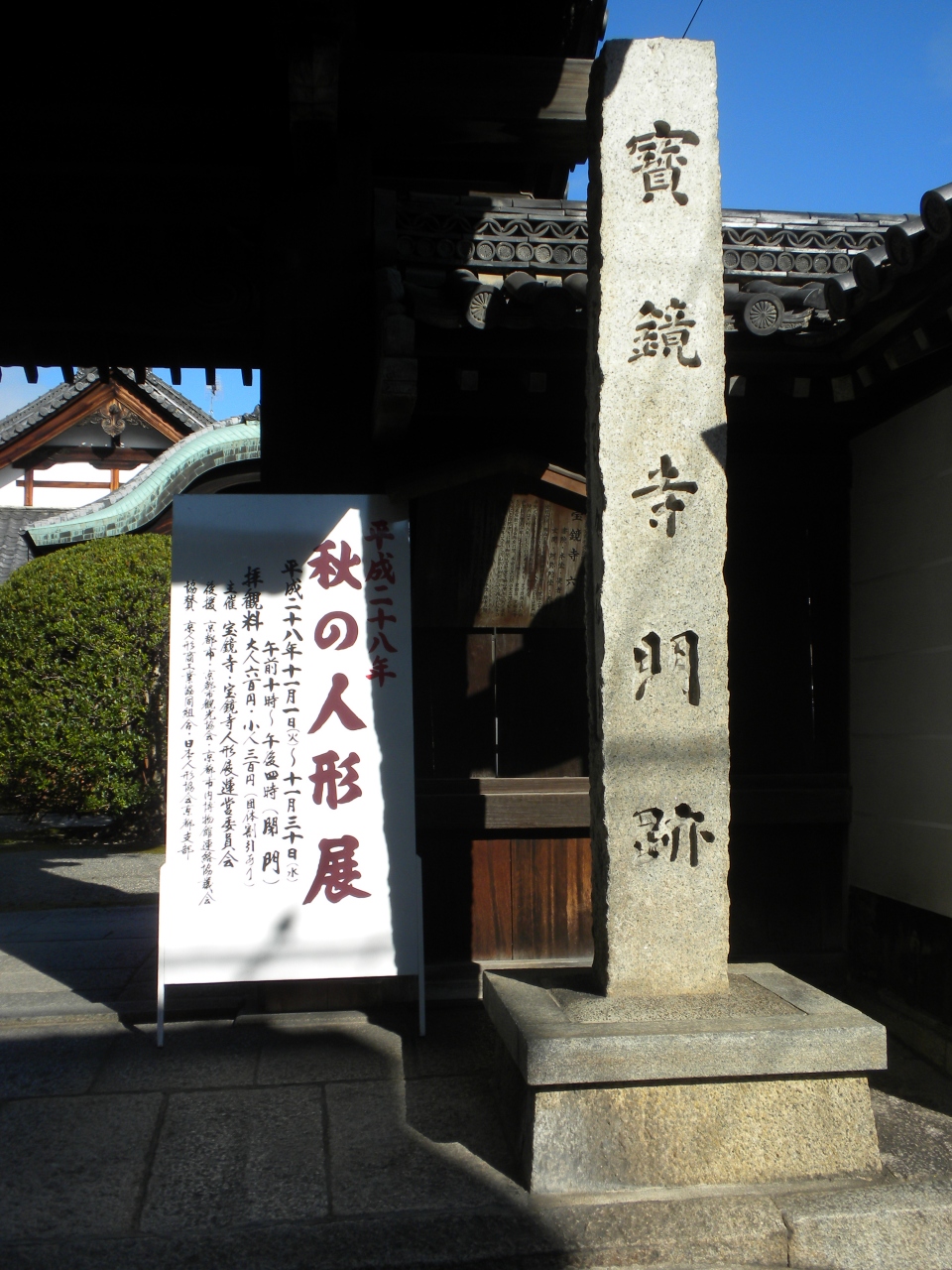 宝鏡寺は通称「人形寺」と呼ばれ、堀川寺ノ内のバス停から東へ直ぐの門跡寺院です。