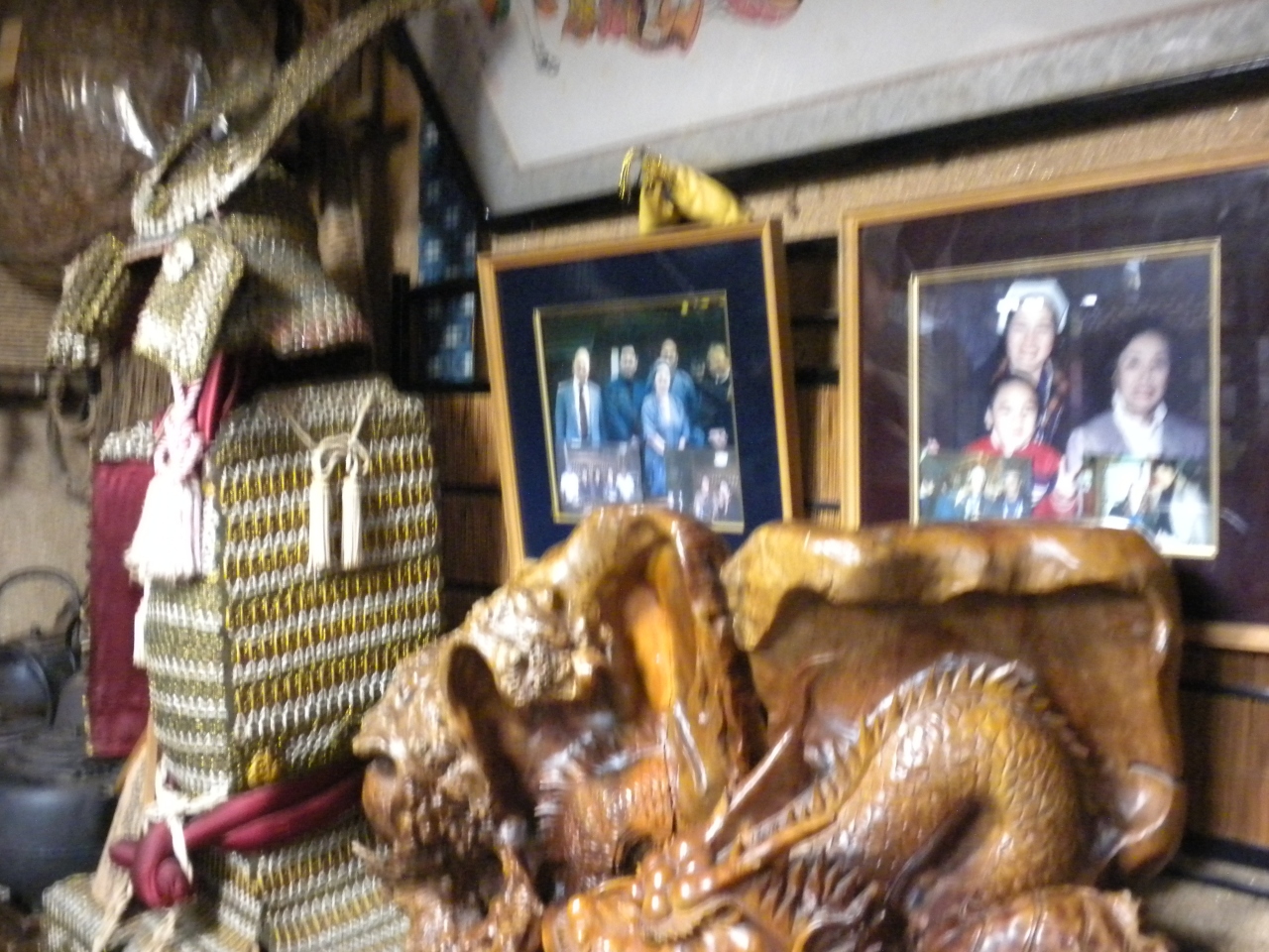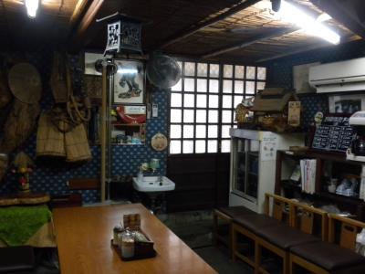 - 民芸品の山の中で食べている感じ。好みが分かれますね。