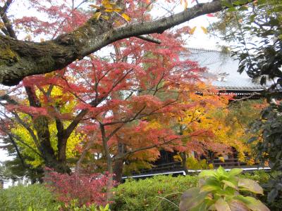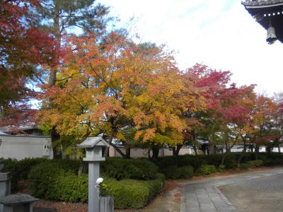 壮大な堂宇を背景に、赤・黄色・オレンジ・緑の鮮やかな見頃の紅葉がとても綺麗でした。