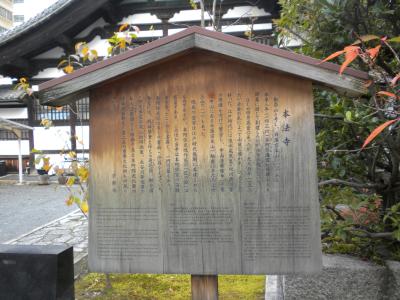 戦国時代の武将:荒木村重の妻:だしをはじめとする一族が謀反の罪でここ妙顕寺に護送され、市中曳き廻しのうえ壮絶な最期を遂げたという2014年の大河ドラマ「軍師官兵衛」の場面を思い出しながら改めてお寺を見て回りました。