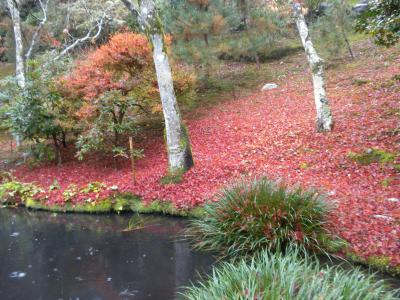 紅葉はやはりここも盛りを過ぎており、氷室の池の蓮の葉も茶色く萎れていました。